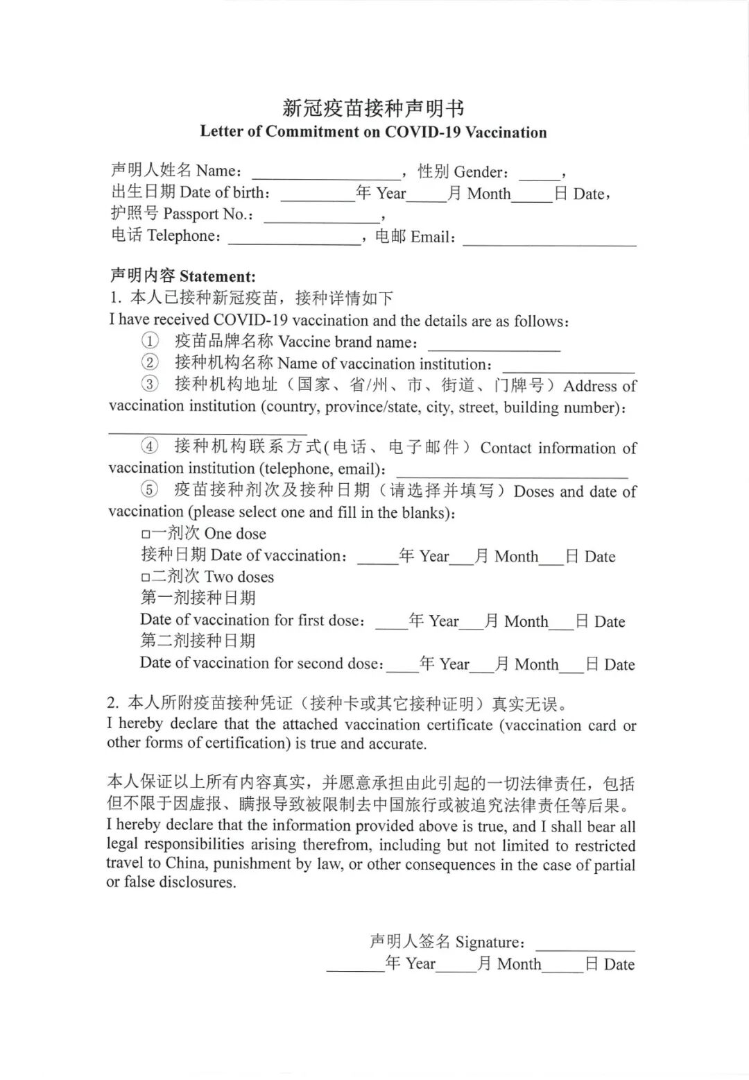 原则上疫苗接种将不被认可,需按照未接种疫苗人员进行行前检测(申请健康码时仍需上传疫苗接种凭证+《疫苗接种声明书》),即加测血清抗体IgM检测。若血清抗体IgM检测呈阳性,可能影响赴华行程。