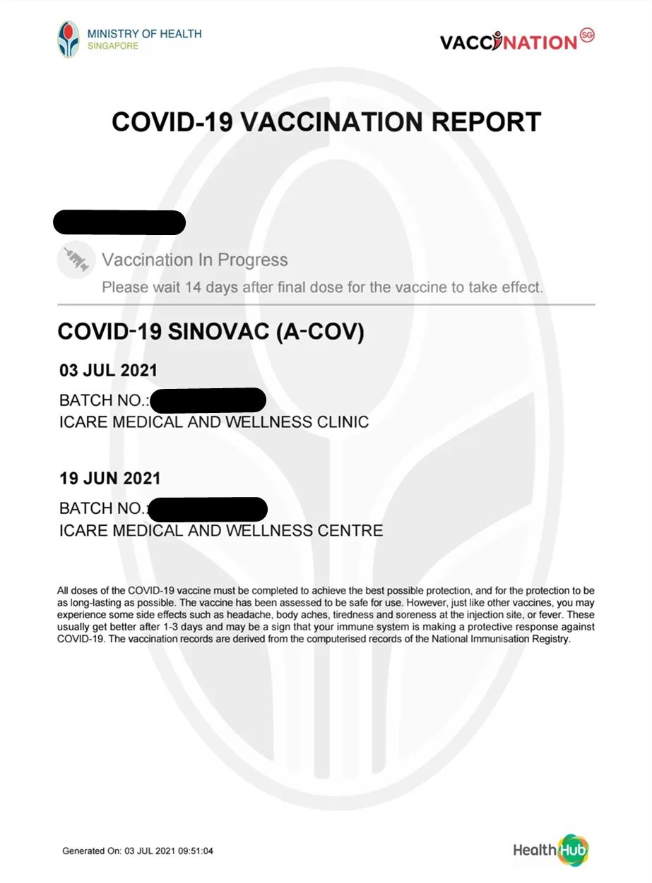 申办上述证明需提前注册Singpass账号,并需要一定时间,如您有赴华意愿,尤其是离职回国人员,请务必提前按照后附的方法提前办妥疫苗证书,避免准证被注销,无法及时申请Singpass账号,影响赴华行程(无Singpass账号人员申请证书方法见附件四第二项)。