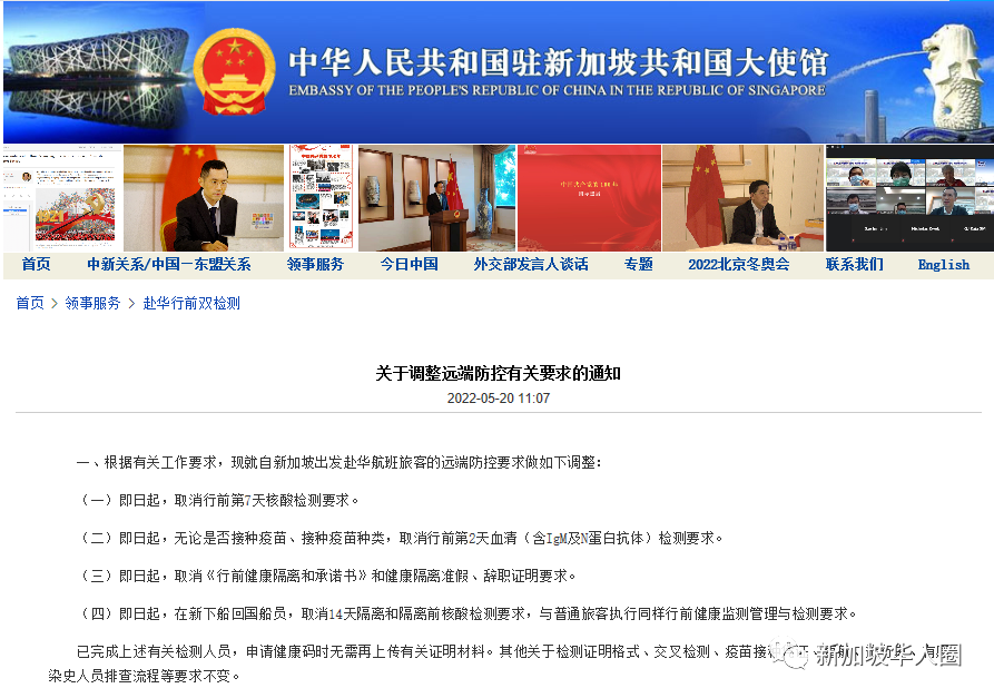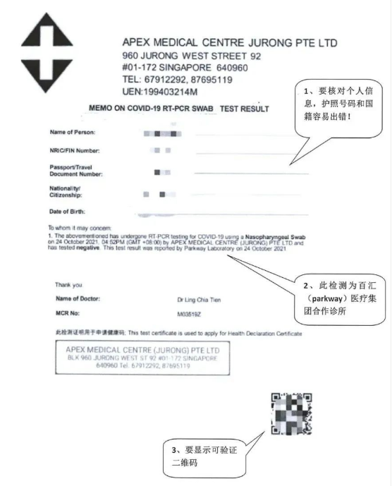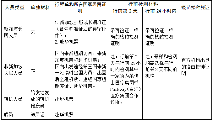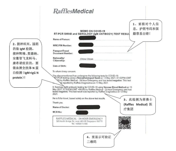赴华旅客在行前2天内与行前24小时检测,其中一家为百汇医疗集团或莱佛士医疗集团。