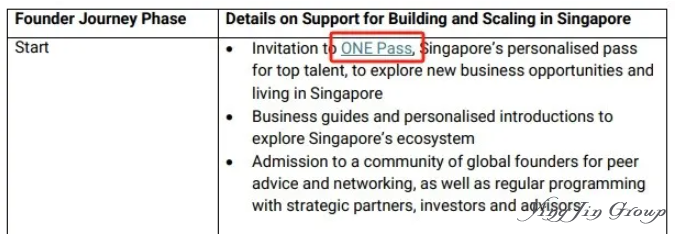 1、生态系统接入:创业者将加入由全球顶尖创业者、战略合作伙伴、投资者及顾问组成的社区,并可申请新加坡ONE Pass(顶尖商业人才通行证),享受定制化商业与生活方式支持。