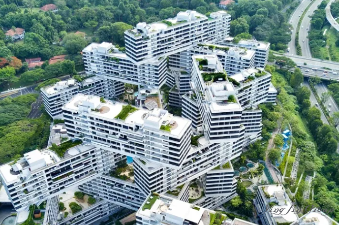 比如碧山的 SkyVille@Dawson 公寓,150米高的楼里设计了贯穿上下的立体廊桥。没风的时候,利用底层和高层的温差形成“烟囱效应”(热空气上升,冷空气从下面补充),实现空气自循环,让公寓内部凉快不少。
