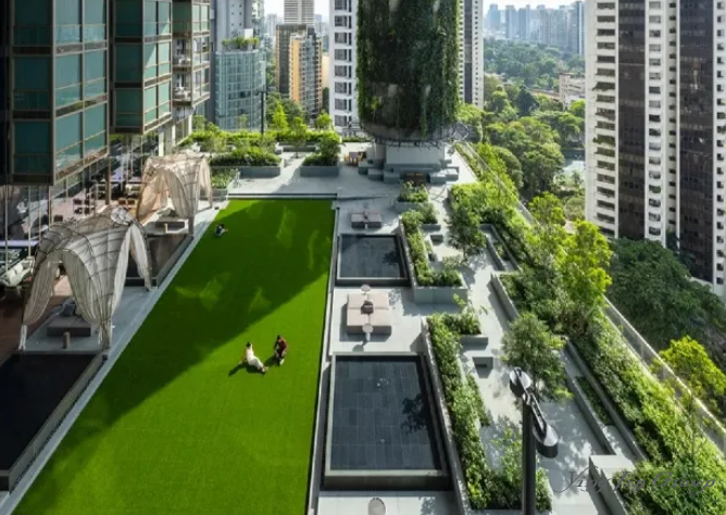 还有像 Oasia酒店 和 泛太平洋大厦(Pan Pacific Orchard),它们玩的是错落的空中花园和巨大的中庭空间。