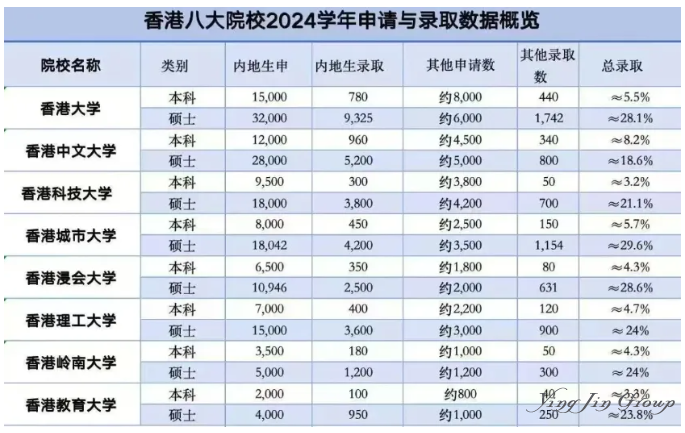 2024香港八大申请与录取数据